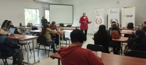 Por medio de la técnica del Banco Nacional de Fomento, Sonia Ayala, se realizó un espacio de información y difusión de los servicios que ofrece para la bancarización de las usuarias, entre ellas, la apertura de cuentas básicas, lo que ofrece el Proyecto Kuñákatupyry que otorga créditos de varios niveles con bajos intereses para las emprendedoras del Centro Ciudad Mujer.